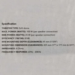 - Efficiency (1W/1M): 87dB