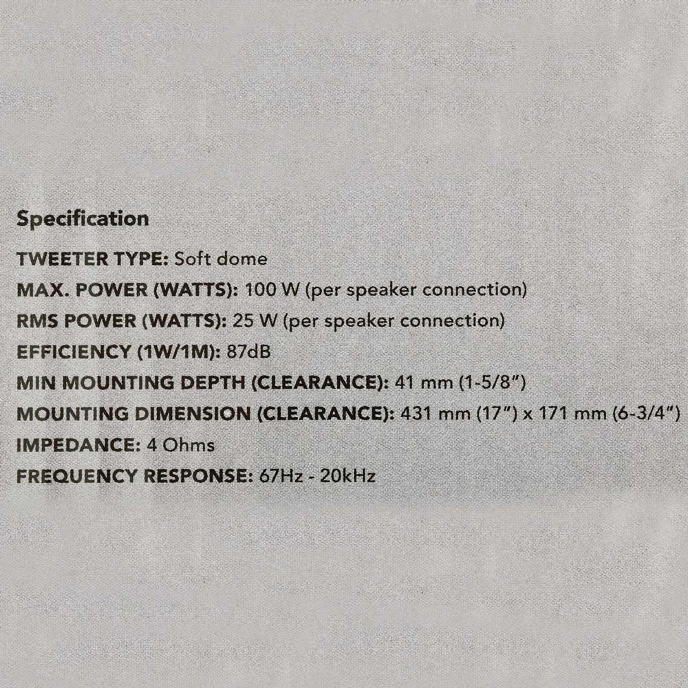 only need to be wired to one location for connection - Two silk dome tweeters, two custom 4″ speaker drivers and a