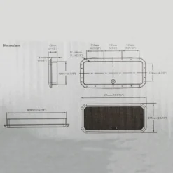 - Mounting dimension (clearance) 431mm x 171mm (17″ x